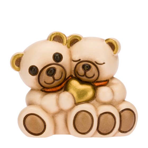 Teddy couple with golden heart
