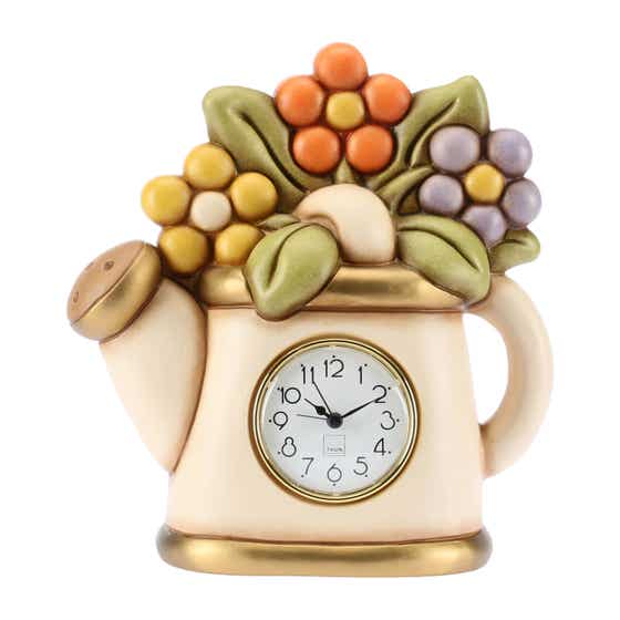 Table clock with watering can and flowers