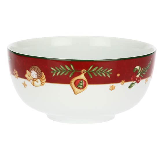 Glaß and ceramic boule de neige angel with mistletoe, medium