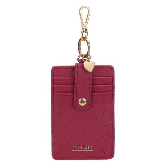 Card holder with hook in eco-leather, cherry