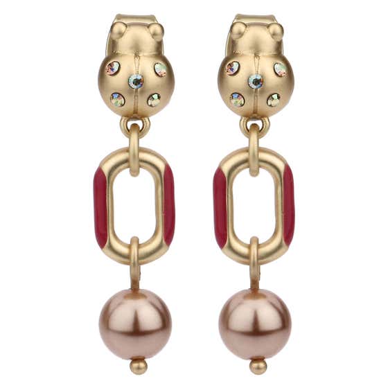 Chunky earrings with ladybug and pearl