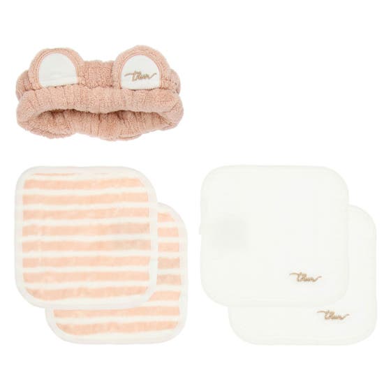 Set of hair band and 4 washcloths