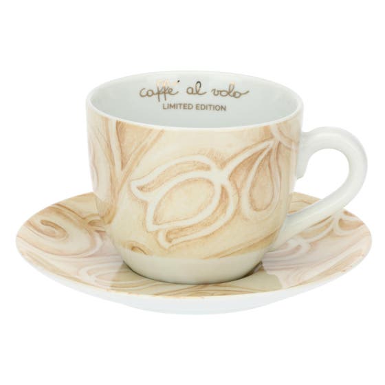 Set of 2 AbbracciAMI porcelain breakfast cups with saucers