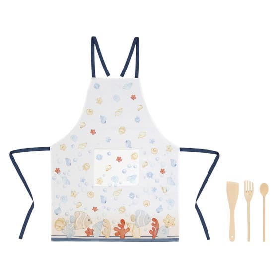 Mare da amare set of 1 cotton apron and 3 wooden spoons