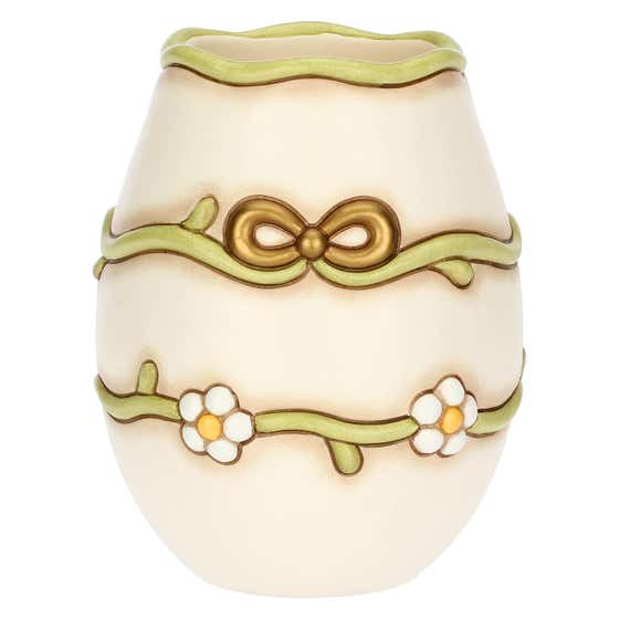 Ceramic vase with daisies and bow, medium