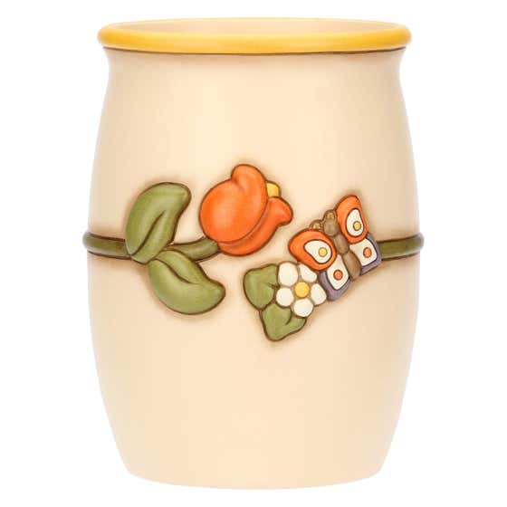 Vase in stoneware with butterflies and ladybird